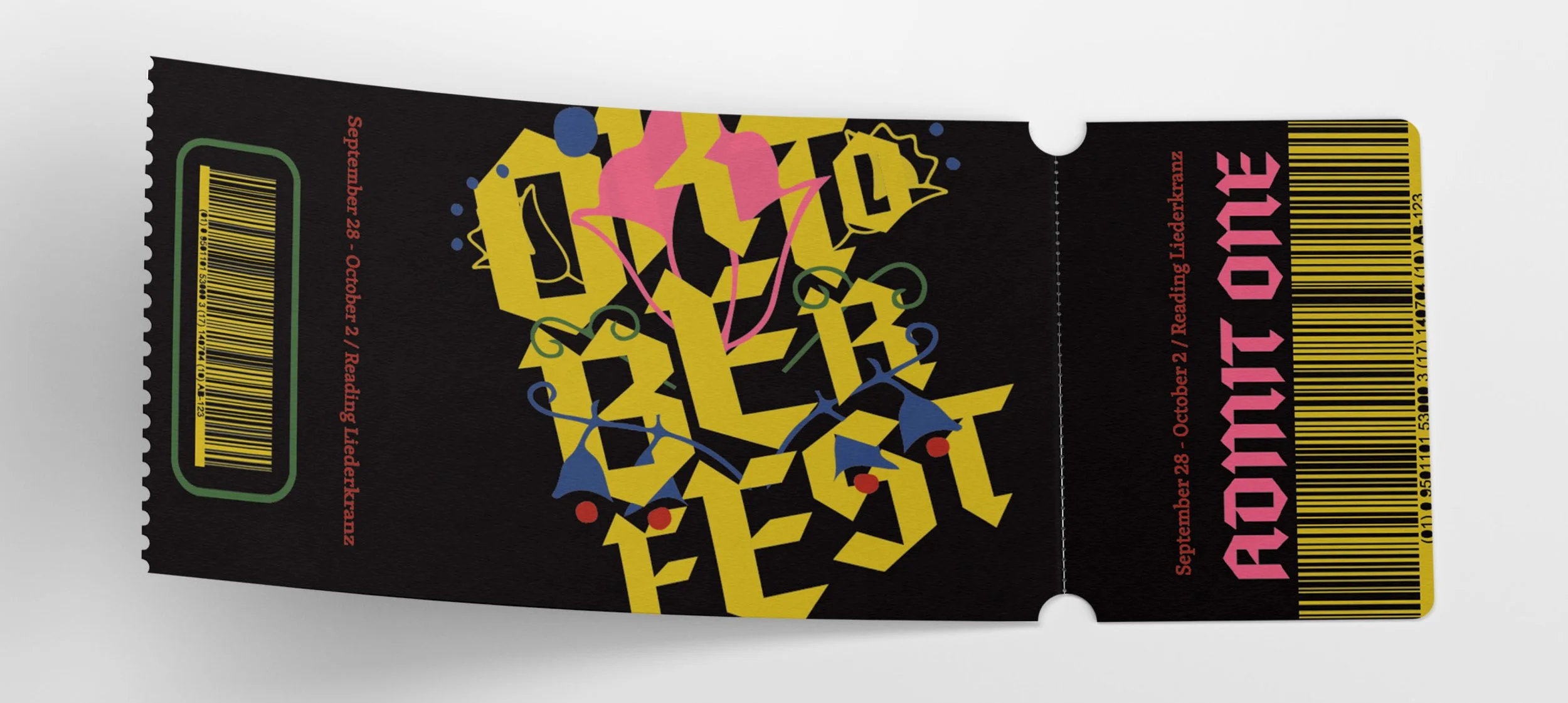 The design for Oktoberfest incorporates the distinctive features of Fraktur type design to evoke a traditional and festive atmosphere.